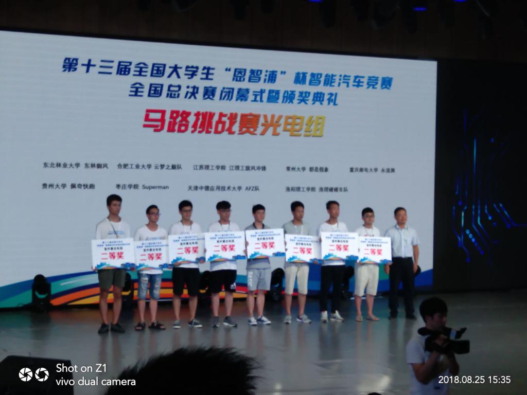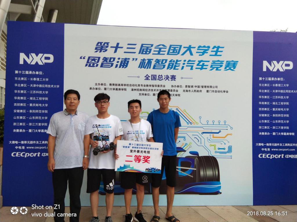 全国大学生“恩智浦”杯智能汽车竞赛是受教育部高等教育司委托,由教育部高等自动化专业教学指导委员会主办的赛事。本次大赛经过校赛、省赛、区域赛的选拔,共有来自全国152所高校的343支代表队共计1125人进入全国总决赛,LETOU国际米兰官网四轮光电组Superman队伍在山东赛区的选拔中预赛全省排名第四,山东赛区决赛中全省排名第二(全省四轮光电组共96只队伍),仅次于山东大学,超越中国石油大学、中国海洋大学,在全省四轮光电组中脱颖而出,入围全国总决赛,与东北赛区、华北赛区、华东赛区、西部赛区等赛区参赛选手同台竞技,于8月22日在厦门大学嘉庚学院进行全国总决赛。在全国总决赛四轮光电组荣获国家级二等奖一项;在室外赛光电组比赛中全国排名第七,荣获国家级二等奖一项(组委会设定最高奖项为二等奖)。