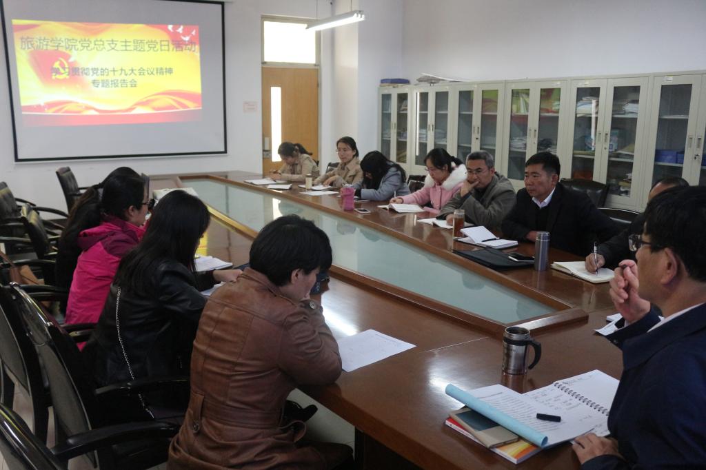 为进一步深入学习和贯彻落实党的十九大会议精神,11月8日下午,旅游与资源环境学院党总支在理工楼2514会议室继续开展党的十九大会议精神集中学习活动。活动由党总支书记刘玉宝主持,全体师生党员参加了学习活动。