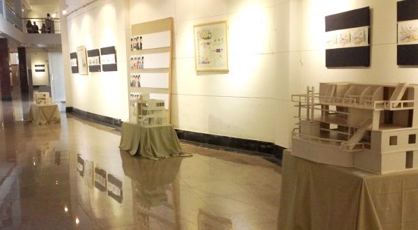 美术与艺术设计学院2011级室内专业“室内设计原理”和2013级美术学国画专业“水粉静物”课程汇报展同时在美术楼一楼、二楼展厅举办。共展出建筑空间模型11个、设计分析图11幅,手绘色彩小稿93幅。水粉静物作品25幅。