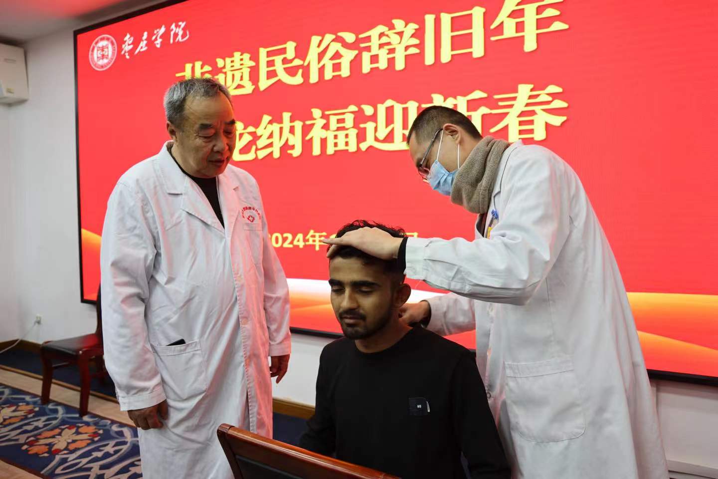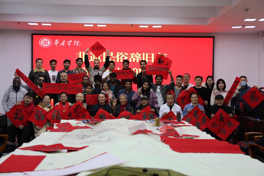 龙年新春将至,为进一步加强对来华留学生中国文化教育,让来华留学生了解和体验中国新春佳节传统文化魅力,切实增强来华留学生对中国发展的理解和认同,近日,LETOU国际米兰官网联合山东省枣庄市市中区矿区街道在市中校区综合楼3楼会议室共同举办“非遗民俗辞旧年 瑞龙纳福迎新春”活动,体验“中国年味”,感受枣院枣春温暖。