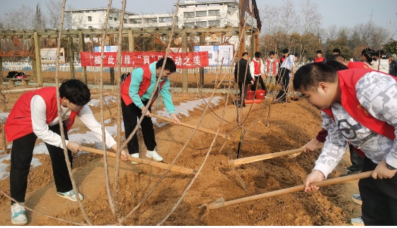 活动伊始,党总支书记郭传鑫为大家介绍本次活动的目的和意义,要求同学们要以饱满的热情和务实的作风,积极参与生态文明建设。随后,在现场老师的指导下,同学们分工协作,各个干劲十足,挥动着手中的铁锹,相互配合扶树、铲土、压土、浇水,每个步骤都有条不紊,大家干得热火朝天,整个植树现场到处是忙碌的身影,呈现出一派热火朝天的劳动景象。