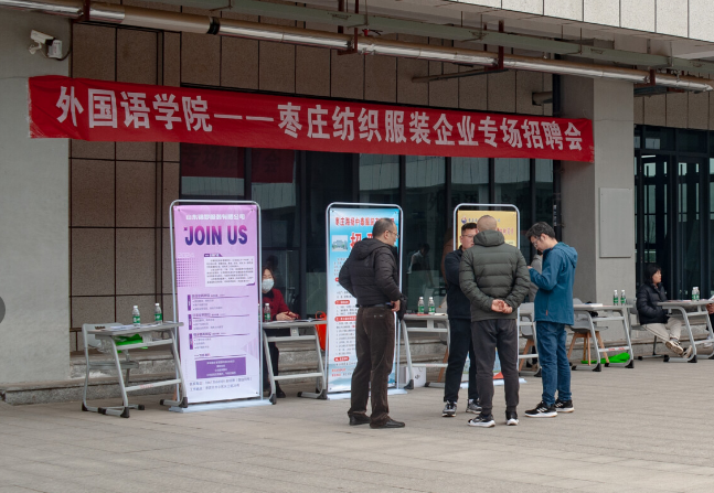 为落实学校就业工作推进会会议精神,促进学院2024届毕业生充分就业,提高学生留枣就业积极性,外国语学院(大学英语教学部)积极与枣庄纺织服装企业协会对接,于3月13日下午,在薛城校区豁然楼西大厅举办专场招聘会。