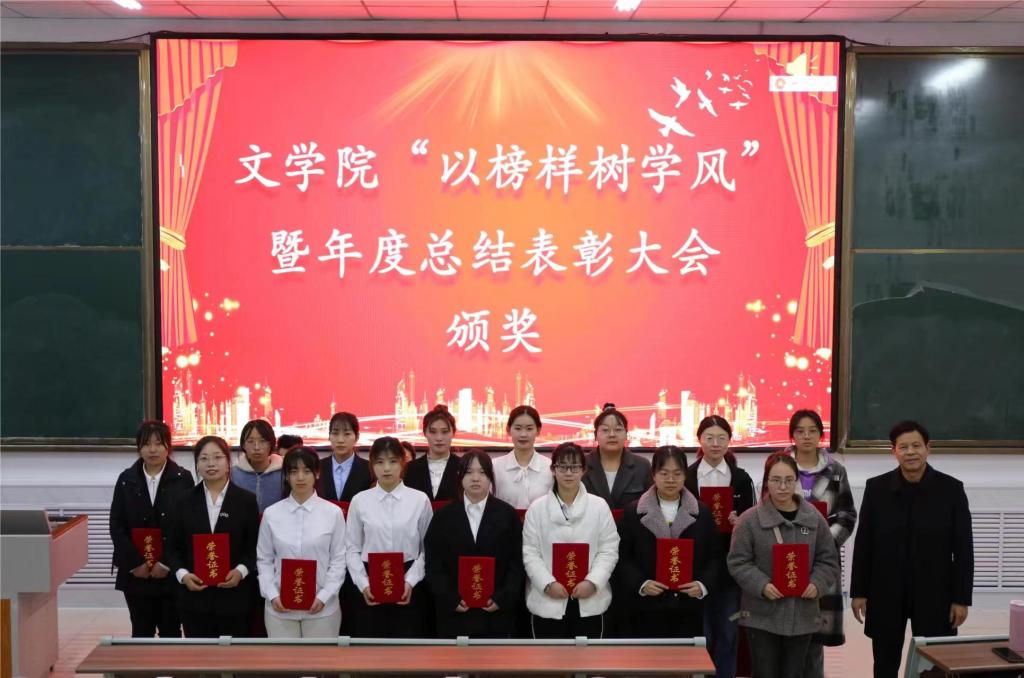 会议宣读了《文学院关于表彰“以榜样树学风”2023年度先进集体先进个人表彰决定》,为2023年表现突出的17个先进集体和90余名优秀个人颁奖。学生会主席程晓云、省政府奖学金获得者李星宇依次上台发言,分享了自己的学习经验和成长感悟。