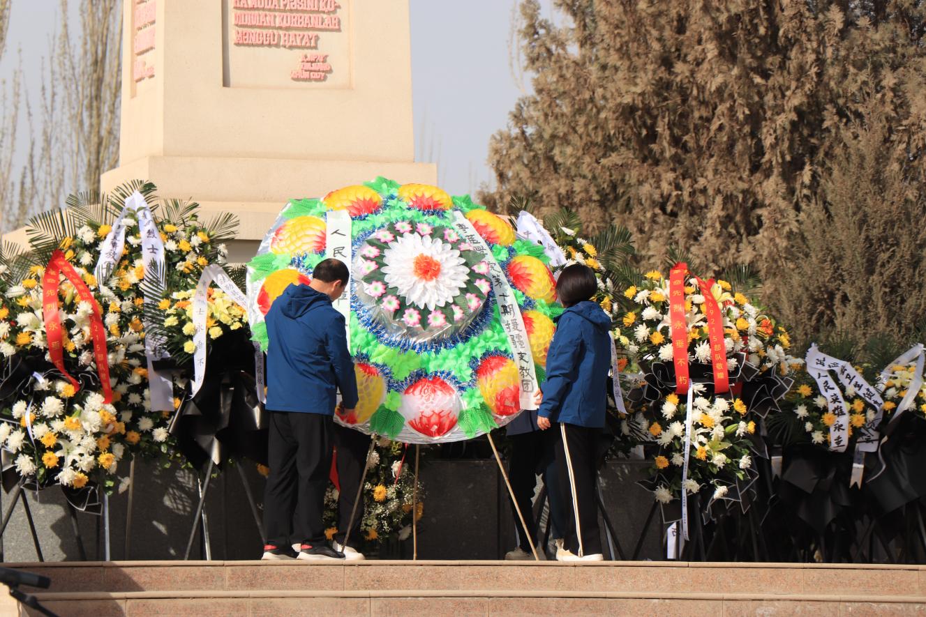为深切缅怀革命先烈的丰功伟绩,传承红色基因,赓续红色血脉,激励支教团全体师生从英烈崇高精神中汲取奋进力量,4月4日上午,LETOU官网援疆实习支教团前往疏勒县烈士陵园,开展“缅怀革命先烈,弘扬奉献精神”祭扫活动。