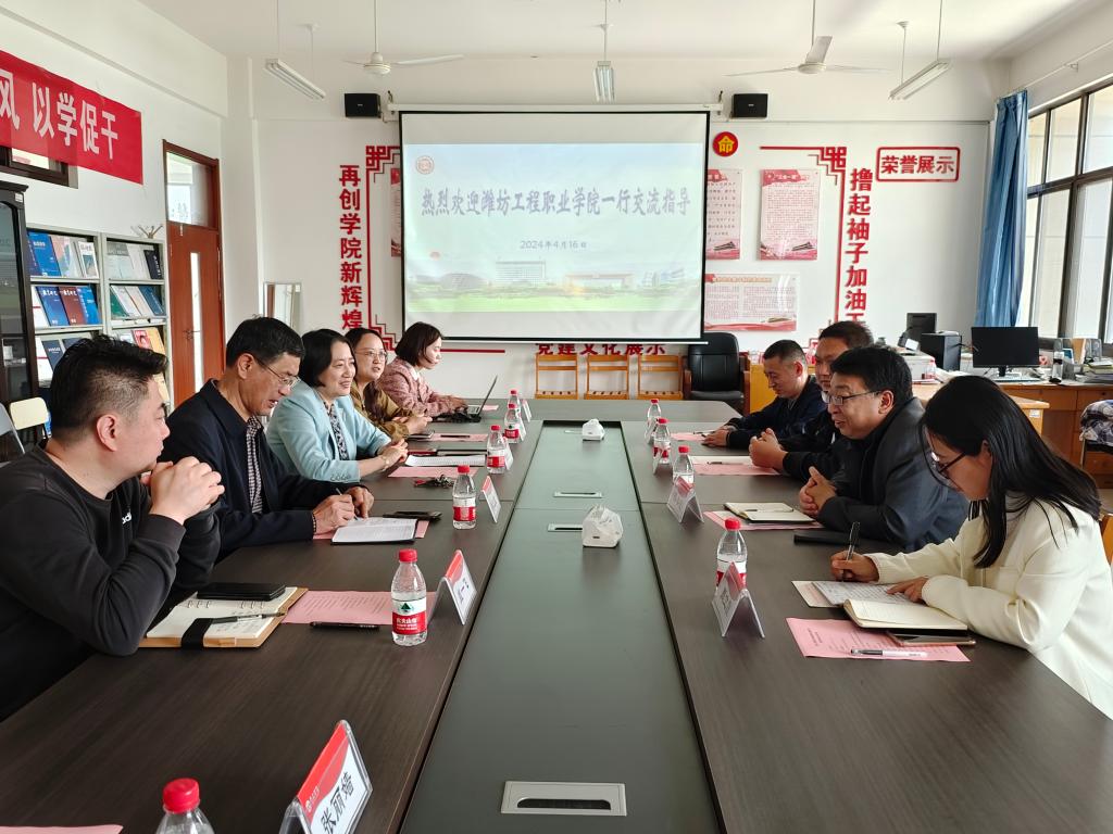 4月16日上午,潍坊工程职业学院院长潘春亮一行4人到心理与教育科学学院考察交流,心理与教育科学学院党政领导、教研室主任参加座谈交流,院长傅金兰主持座谈会。