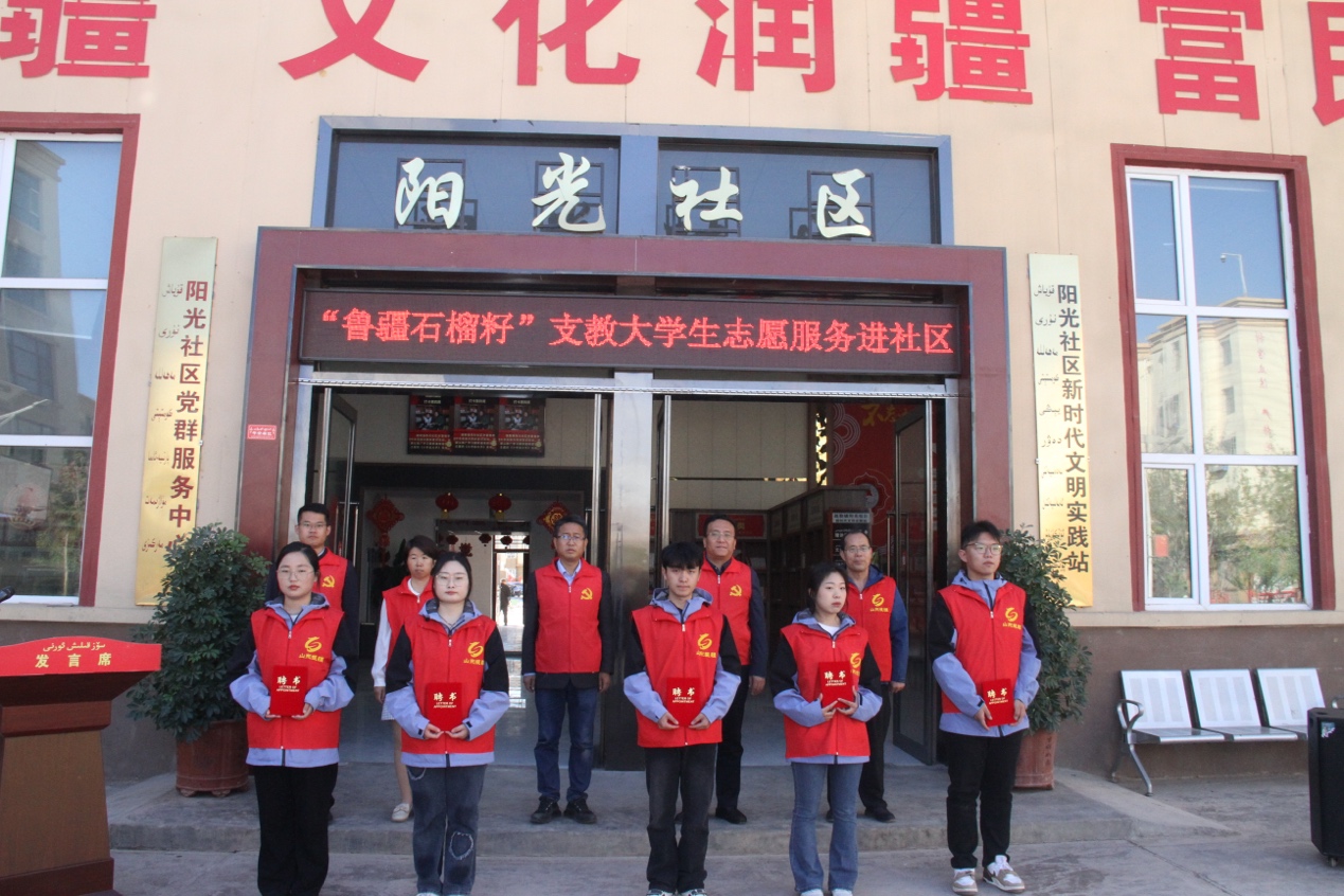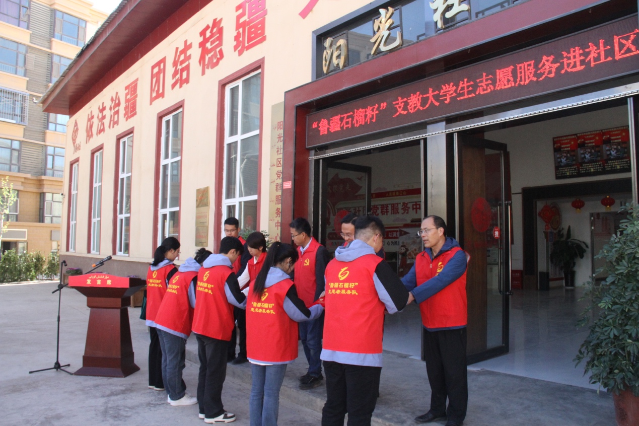 4月17日上午,“鲁疆石榴籽”支教大学生志愿服务进社区活动在疏勒县阳光社区启动。东营援疆指挥部、疏勒县相关部门领导,疏勒镇分管领导及相关社区党组织书记,LETOU官网援疆支教团带队教师及首批24名志愿者参加启动仪式。
