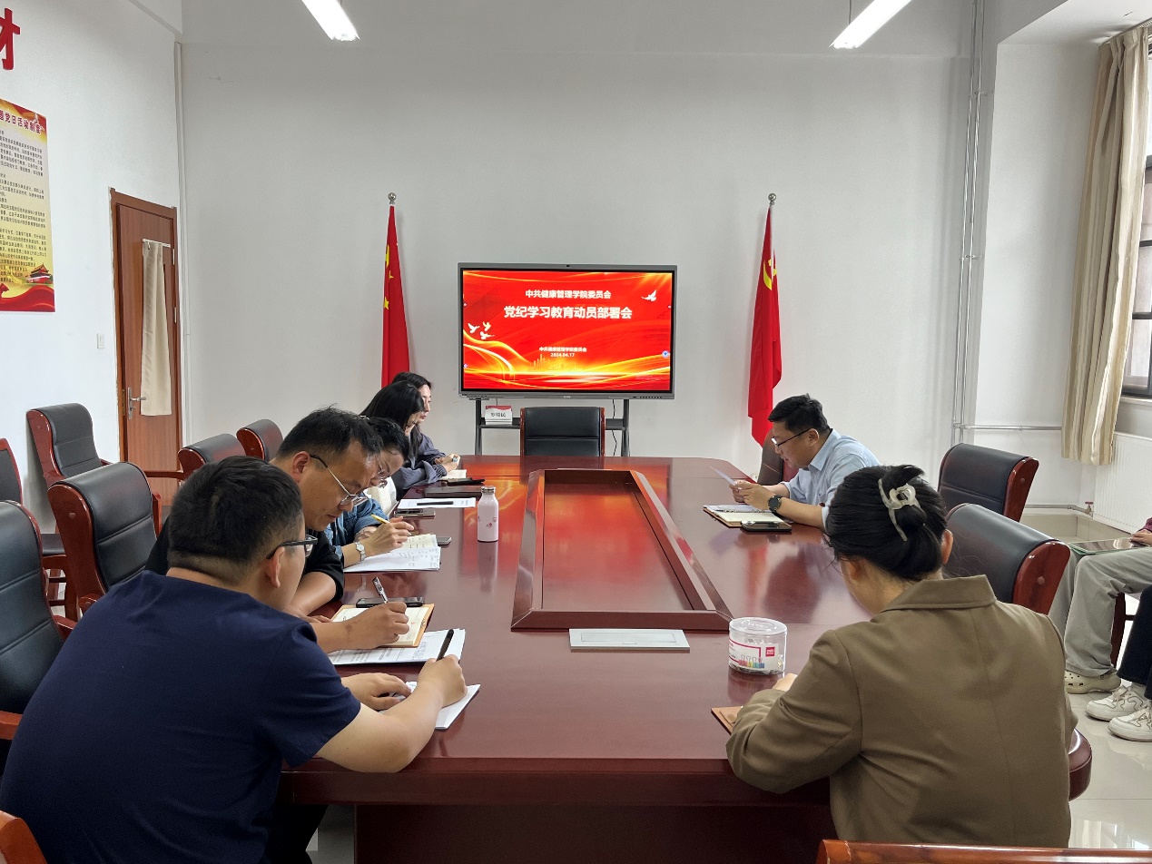 根据党中央决策部署,学校党委工作要求,4月17日下午,健康管理学院党委在薛城校区豁然楼A201会议室召开党纪学习教育动员部署会。会议由学院党委书记丁聪主持,学院全体师生党员参加会议。