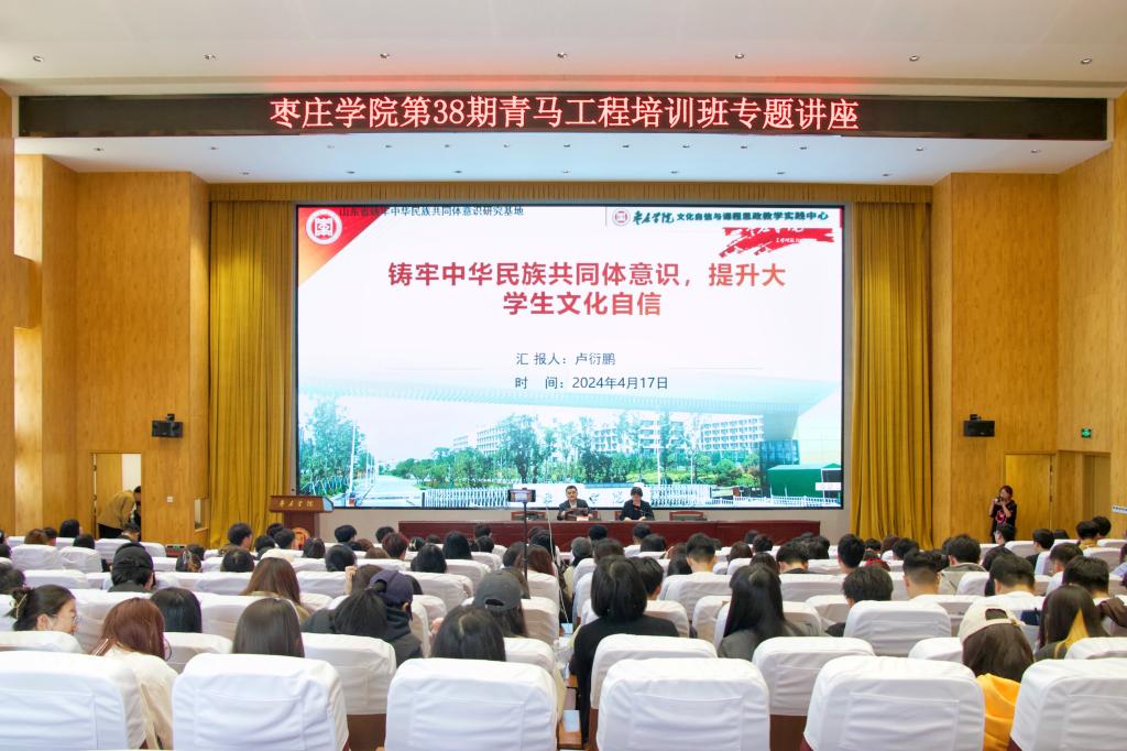 为深入学习习近平总书记关于铸牢中华民族共同体意识的重要论述,引导广大青年深入理解和践行铸牢中华民族共同体意识,4月17日,校团委在薛城校区崇德楼报告厅举办铸牢中华民族共同体意识专题讲座,邀请马克思主义学院卢衍鹏教授作专题授课,各学院2023级团干部及校级学生组织代表等600余名青马学员参加。