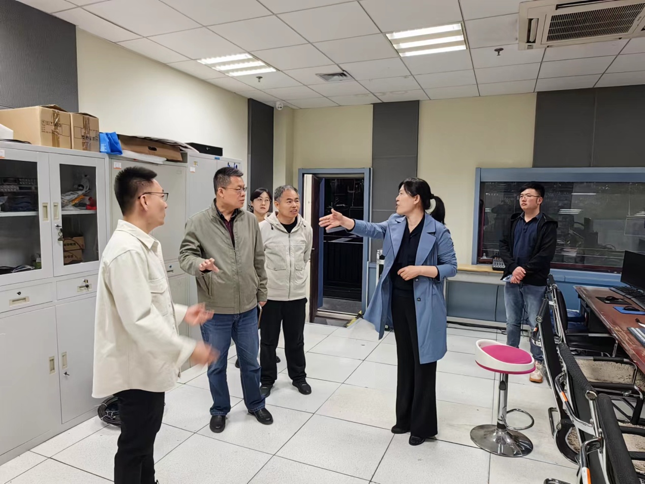 在山东传媒职业学院影视制作系相关负责人的陪同下,李文奎一行人参观了山东传媒职业学院实训中心,并对中心的建设功能布局、实训教学实施、后期管理维护、对接服务社会等方面的先进理念、规划思路和成功经验进行了调研。