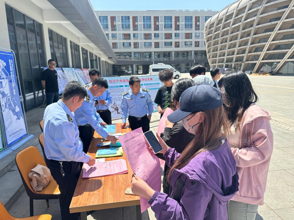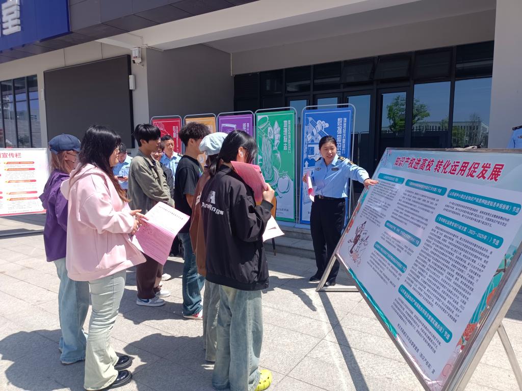 在薛城校区,薛城区市场监督与管理局工作人员围绕“知识产权转化运用促进高质量发展”主题,向大学生发放知识产权法律法规宣传资料,普及地理标志、专利、商标等相关知识,讲解如何辨别假冒伪劣商品、防网购欺诈等消费维权知识,与前来咨询的大学生分享知识产权保护实际案例、探讨知识产权热点问题,积极引导学生们树立知识产权保护意识、激发知识产权创新精神。活动累计发放知识产权宣传手册、知识产权明白纸等宣传资料300余份。
