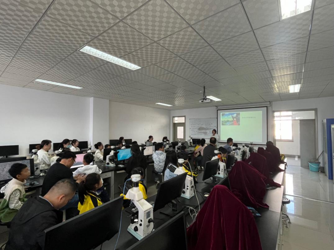 食品科学与制药工程学院实验室主任杜健讲解了食品与制药实验教学示范中心的发展历史,全面介绍了其主要实验室分布,陪同参观并讲解了实验室。大家重点参观了的烘焙中试车间、中药资源标本馆和显微数码互动实验室,并在老师的指导下进行了糕点制作和中药显微观察等互动。主讲教师用一个个生动活泼的故事还原了中医药的发展历程,通过标本讲解和显微观察中药材的微观结构,打开了学生们对中医药学的兴趣之门。