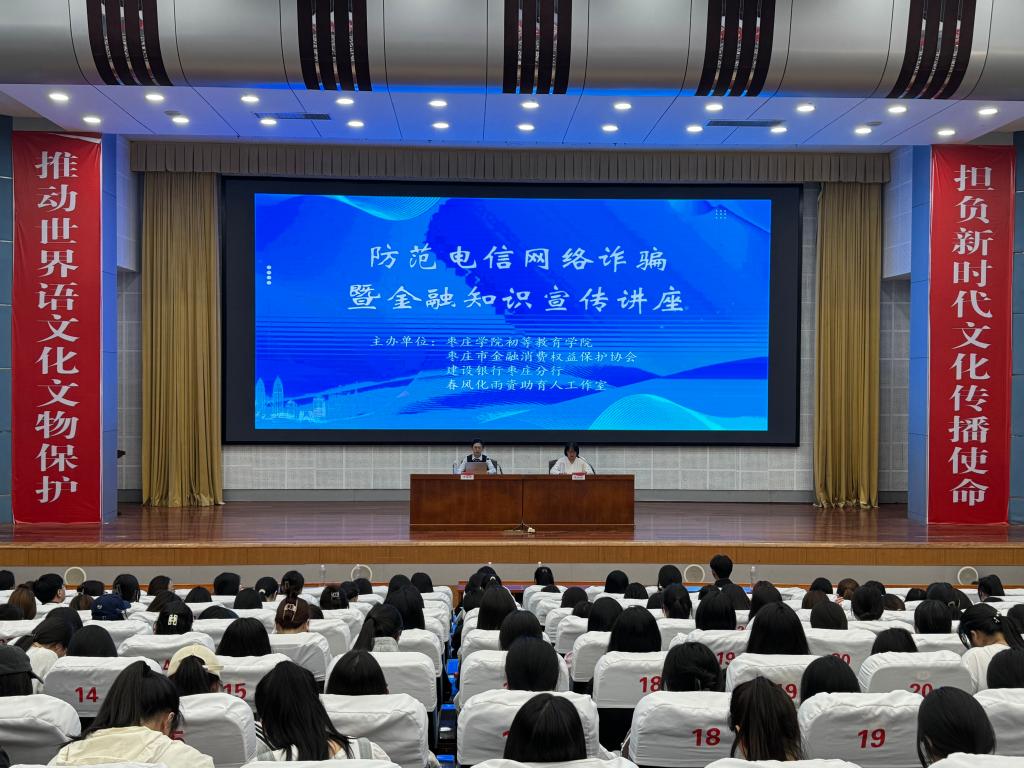 为贯彻落实校党委“平安校园”建设有关要求,进一步增强学生防范电信网络诈骗意识和能力,推动学院反电诈工作常态化、制度化,近日,初等教育学院在市中校区综合楼报告厅举办防范电信网络诈骗暨金融知识讲座。活动邀请了枣庄市金融消费权益保护协会、建设银行枣庄分行、春风化雨资助育人工作室的部分领导、讲师来校,市金融消费权益保护协会讲师、建行枣庄新城支行行长于涵洋作专题讲座。