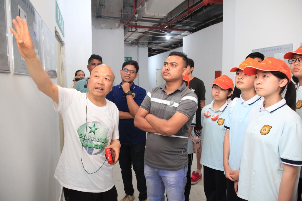 来自市中校区光电工程学院、机电工程学院、生命科学学院、心理与教育科学学院、国际教育学院(外国留学生),以及枣庄第四十一中学的近200名师生参观了此次展览。世界语博物馆建设研究专家孙明孝为参观人员导览。