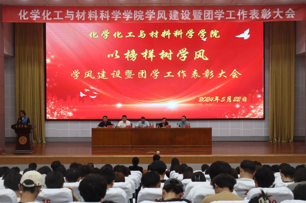 为落实立德树人根本任务,充分发挥先进典型的示范引领作用,扎实推进学风建设和人才培养工作,5月22日下午,化学化工与材料科学学院在市中校区综合楼报告厅举办“以榜样树学风”学风建设暨团学工作表彰大会。学院领导班子成员、受表彰学生、教师和学生代表参加会议。