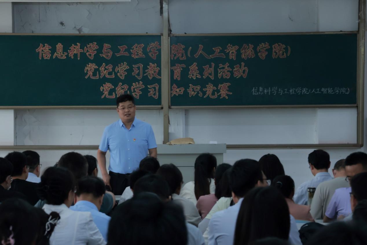为全面贯彻习近平新时代中国特色社会主义思想,深入学习贯彻党的二十大精神,切实推进学院党纪学习教育深入开展,5月22日,信息科学与工程学院(人工智能学院)在理工楼2106开展党纪学习教育知识竞赛,学院全体党员参赛。