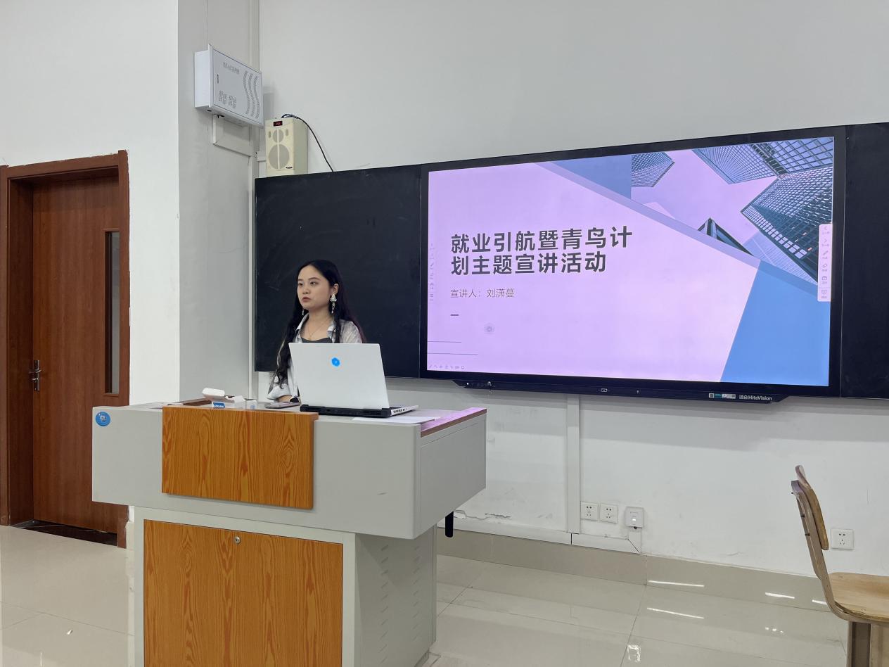 为搭建学生就业创业的桥梁和纽带,助力学生高质量就业,引导学生立足实际、找准定位,树立理性、合理的择业观、就业观,5月28日下午,美术与艺术设计学院在薛城校区德艺楼113举办“大学生就业引航计划”暨青鸟计划主题宣讲活动。