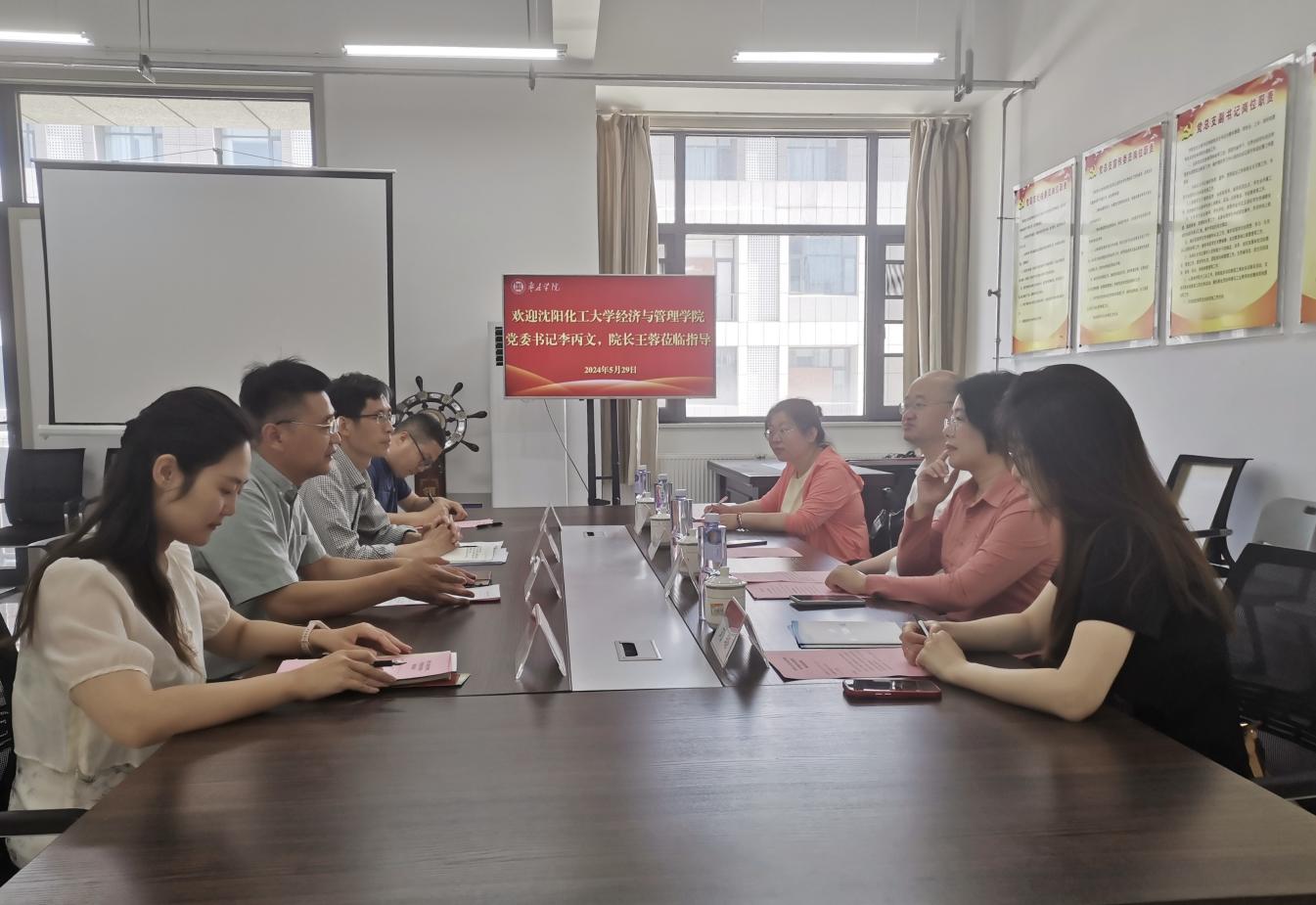 5月29日上午,沈阳化工大学经济与管理学院党委书记李丙文、院长王蓉一行到经济与管理学院考察交流。学院党委书记艾衍辉等参加座谈会。