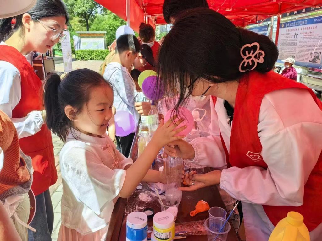 6月1日上午,化学化工与材料科学学院联合道南社区和市中交警大队志愿服务队开展了“红市中 暖万家”之“六一儿童节”志愿服务活动。活动现场,志愿者带来的科学实验秀融入“科学魔术”、动手DIY、亲手实验的环节,志愿者化身化学魔法师,带领和指导小朋友完成了“生气的瓶子“消失的文字”“大象牙膏”等实验,通过体验非遗传统项目—古法造纸和扎染,小朋友在亲手实践中传承了中华传统文化、增强了文化自信。