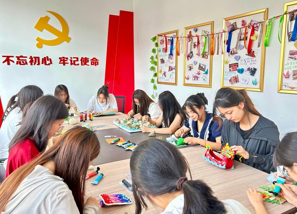 6月6日,美术与艺术设计学院在薛城校区9号宿舍楼美育空间开展“粽情毕业 高粽启航”“一站式”学生社区美育主题活动。学生们以“端午”为主题,绘制团扇、DIY漆扇,并在作品上附上书法祝词送给毕业生。随后,共同观看了《清廉中国端午专题片》,让学生重温了屈原舍生报国的爱国情怀。