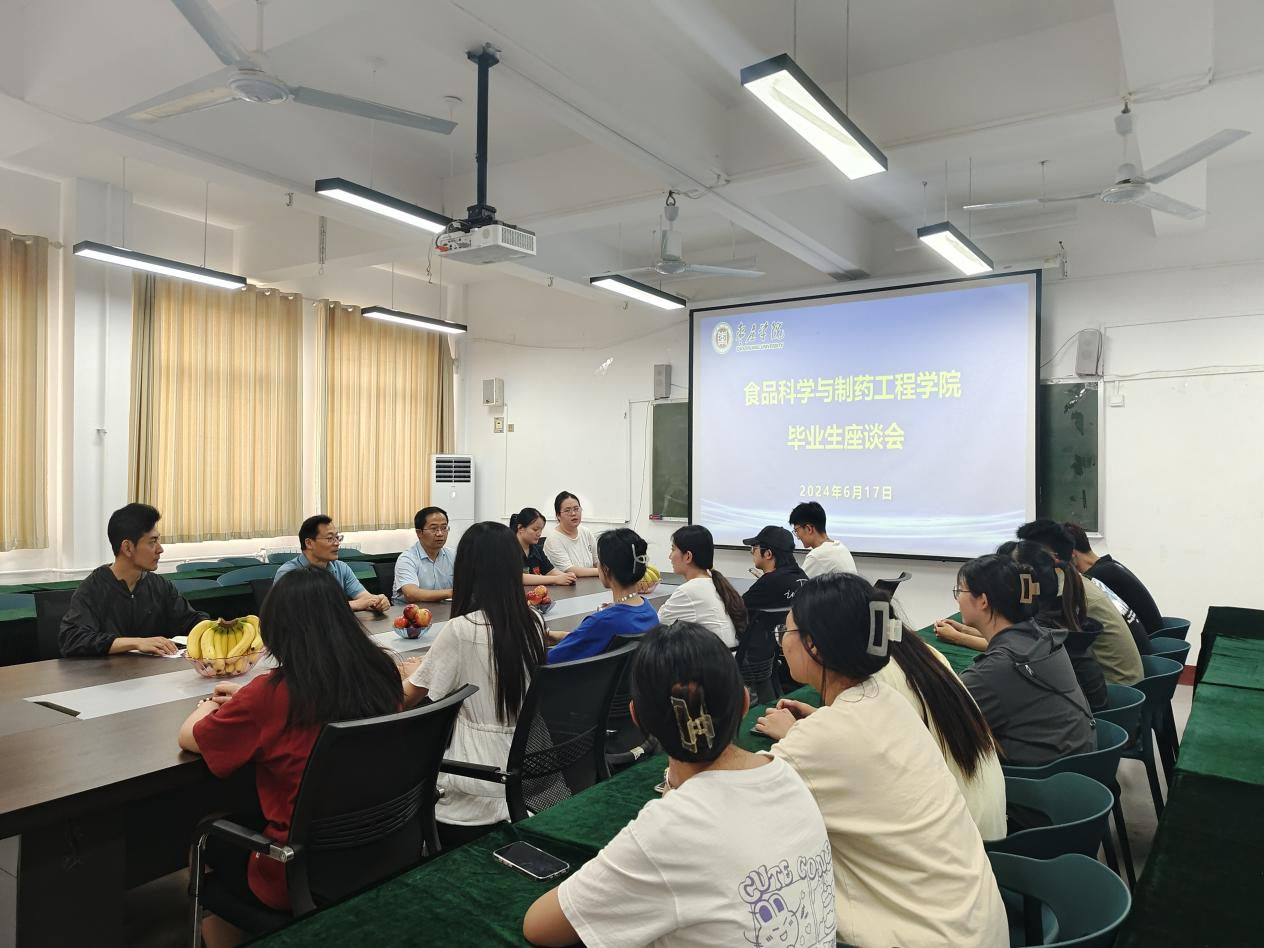 6月17日下午,食品科学与制药工程学院在市中校区文科楼213会议室召开2024届毕业生代表座谈会。学院党委书记滕聿峰出席会议并讲话。学院相关领导、毕业班辅导员、班主任及毕业生代表一同参会。