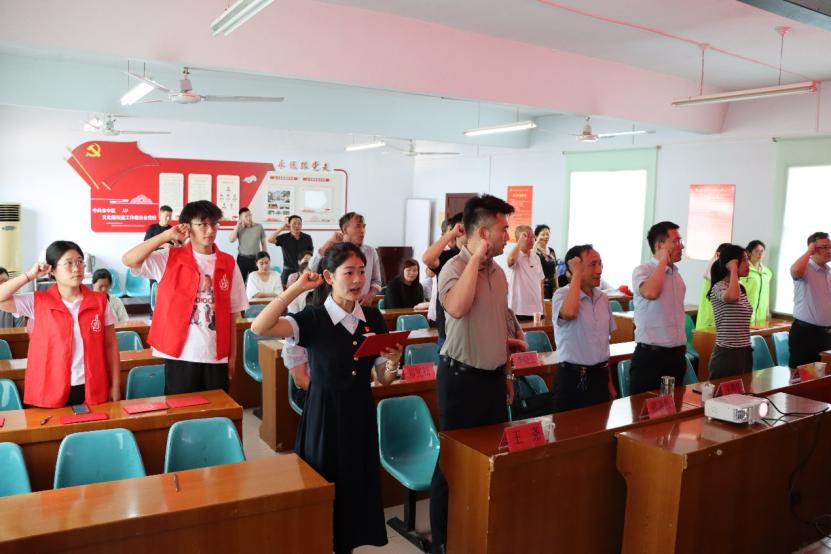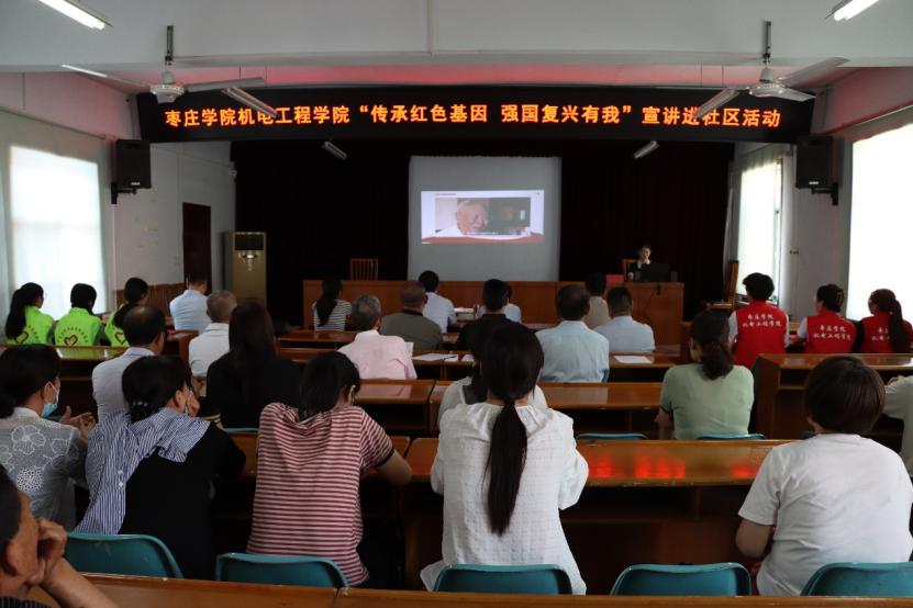 为庆祝中国共产党成立103周年,在“七一”建党节来临之际,6月26日下午,机电工程学院“红齿轮”志愿服务队走进市中区文化路街道开展“传承红色基因 强国复兴有我”西柏坡精神宣讲,区政协副主席褚洪昌、祖统委主任王常建、街道党委副书记王尧、街道老战士老党员代表、机电工程学院师生党员等出席活动。本次活动由街道团委副书记张虎成主持,宣讲团成员王兴雨主讲。