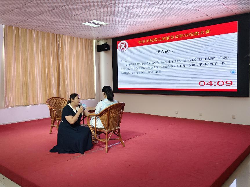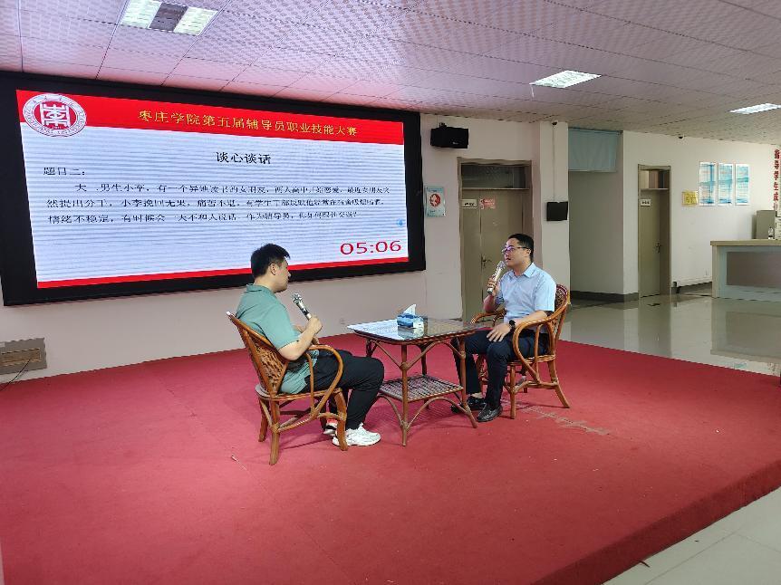 谈心谈话环节模拟辅导员工作时真实场景,与学生开展谈心谈话。参赛老师随机抽取题目,根据题目背景与助演学生开展谈心谈话,更全面地了解学生当前的困惑和挑战,有针对性地提供支持和帮助,并利用谈话的契机走近学生、了解学生、关心学生,切实解决学生的问题。