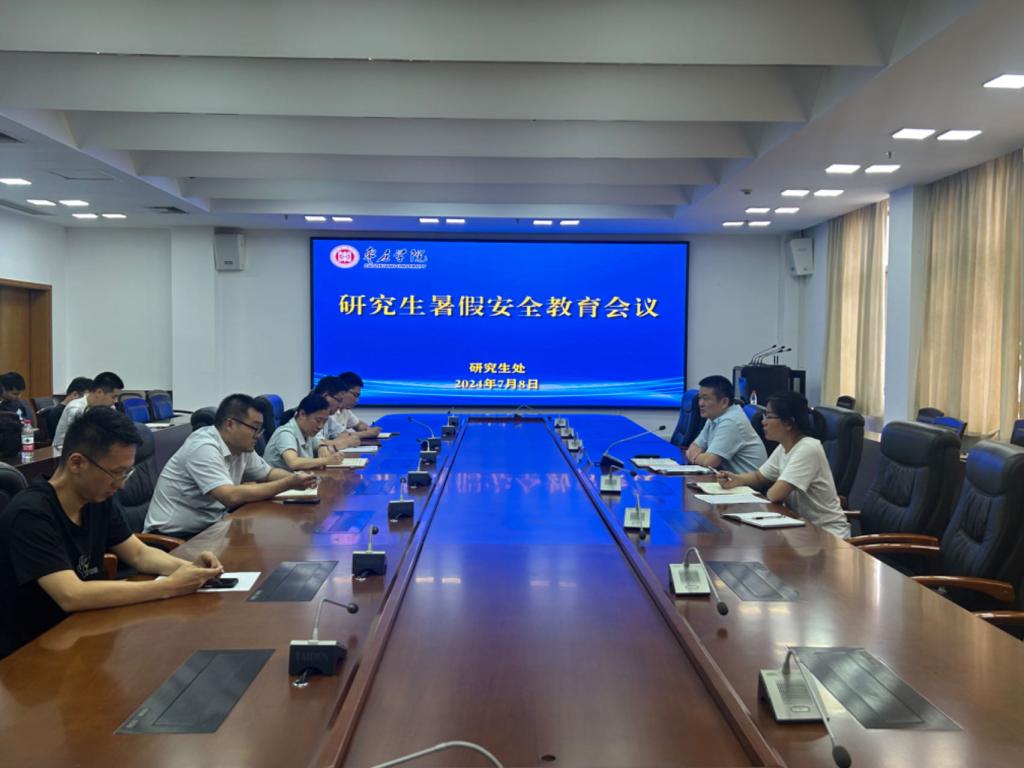 7月8日下午,研究生暑假安全教育会议在市中校区综合楼三楼会议室召开。光电工程学院、食品科学与制药工程学院、化学化工与材料工程学院、信息科学与工程学院(人工智能学院)、生命科学学院单位负责人和研究生导师及50余名联合培养研究生参加会议。研究生处处长闫昕主持会议。