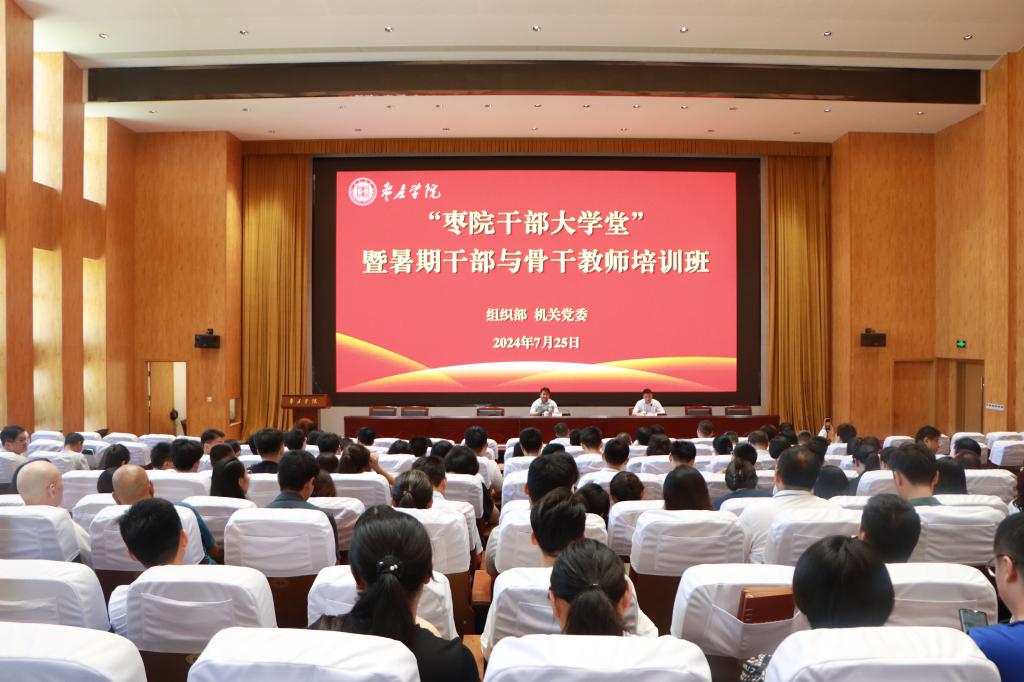 为进一步提升干部和骨干教师能力素质,为学校高质量发展提供有力组织保障,7月25日上午,学校组织部联合机关党委在薛城校区崇德楼报告厅举办“枣院干部大学堂”暨暑期干部与骨干教师培训班。机关副处级干部、全校科级干部、2024年新提拔的副处级干部、校聘副院长、教学科研办公室主任参加培训。机关党委书记王大鹏主持会议。