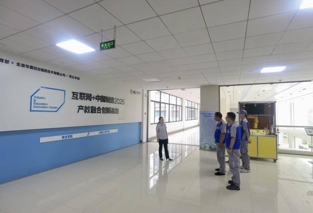 会后,青岛啤酒(枣庄)有限公司一行参观了学院“互联网+中国制造2025”产教融合创新基地,并对电路、PLC、工业总线等软硬件设施进行咨询和交流。