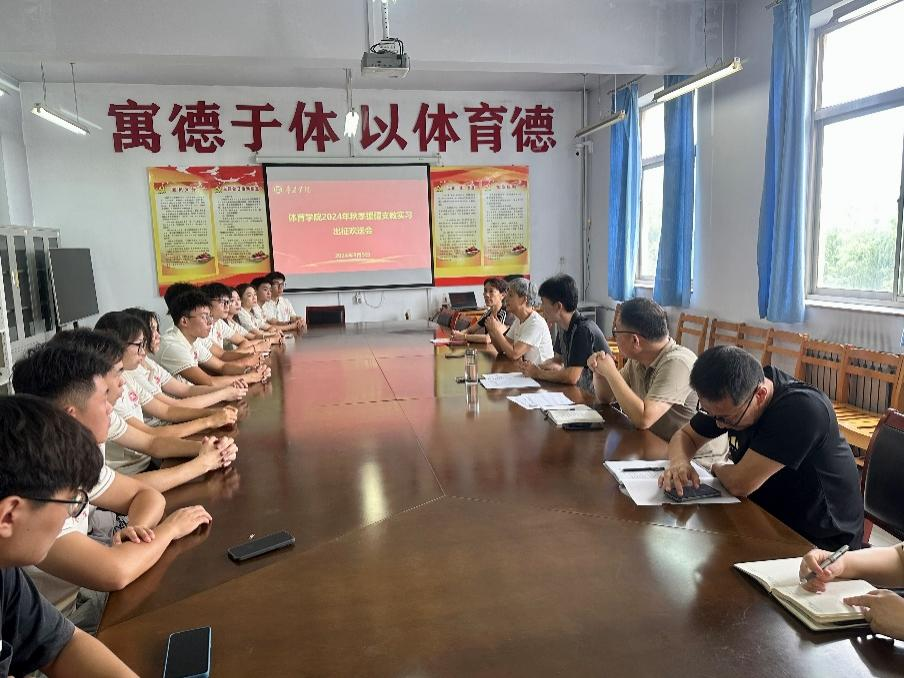9月5日上午,体育学院在市中校区体育楼201会议室为即将踏上援疆支教实习征程的学子们举办出征欢送会。学院党政领导与即将出征的12名支教学子齐聚一堂,共同见证这一重要时刻。
