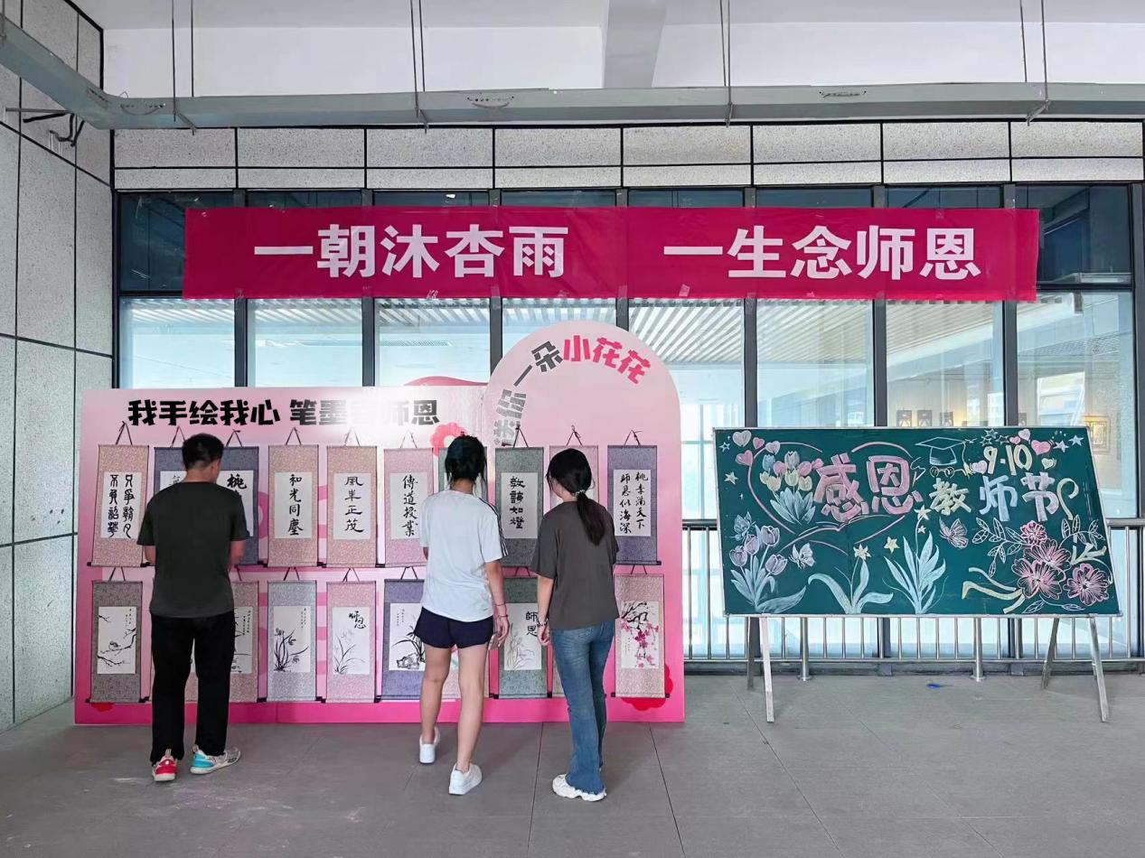 在第40个教师节即将来临之际,为提升教师立德树人、自信自强的精神风貌,营造尊师重教的浓厚氛围,9月9日,美术与艺术设计学院举办“我手绘我心·笔墨寄师恩”教师节主题书画作品展。