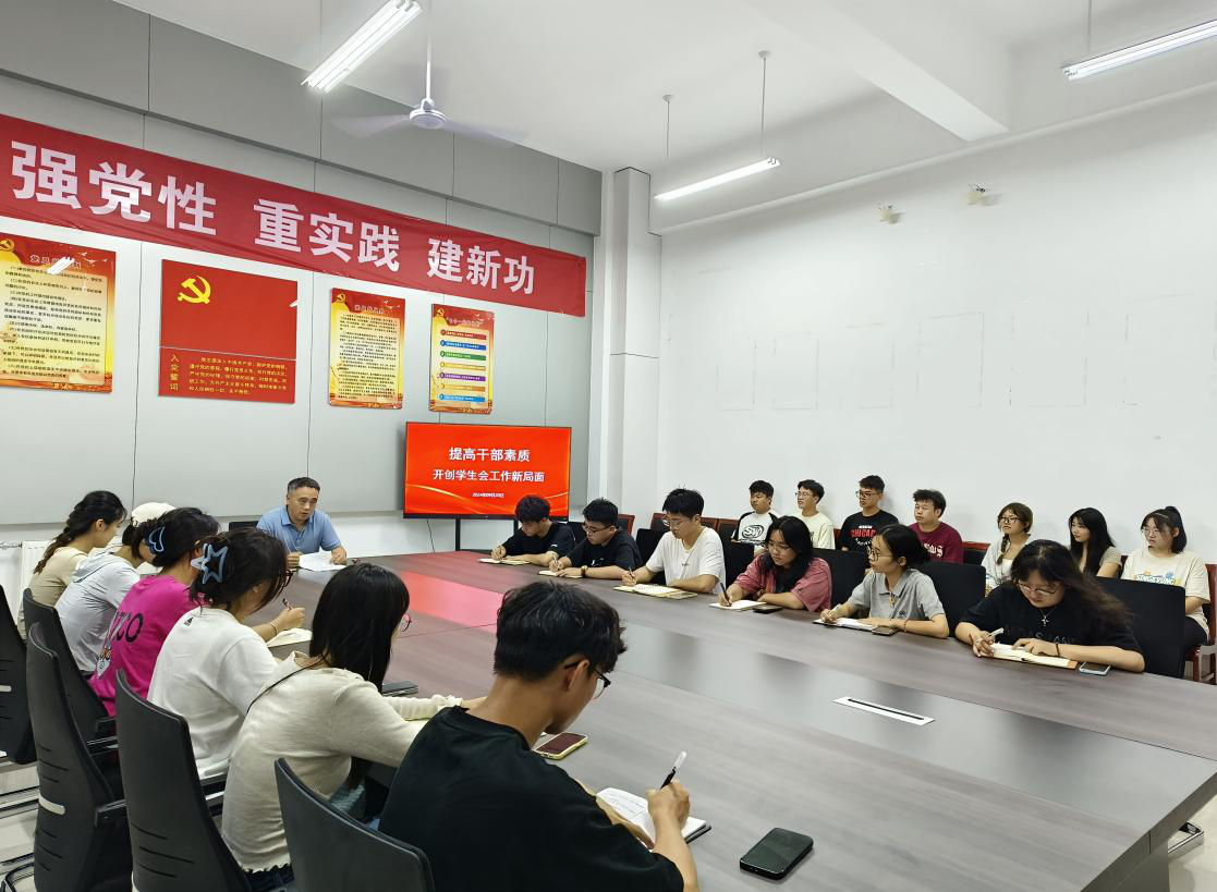 蔡永清结合党的二十届三中全会精神,从新发展理念入手,阐释了高质量发展的内涵和重要性,进而梳理了学院高质量发展的系统工作,并对学生会工作提出明确要求。一要明确职责,勇于担当实干、自主创新;二要强化集体领导、分工负责、互相配合,实现学生工作特色发展;三要努力提升工作质量和效果,争取最好成绩;四要善于谋划和总结,提高文字表达水平;五要学做思想动员工作,争取广泛支持;六要以身作则,严格执行规章制度,严守纪律。
