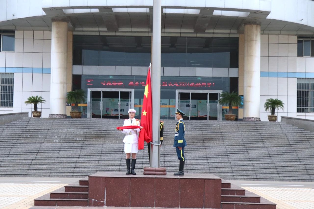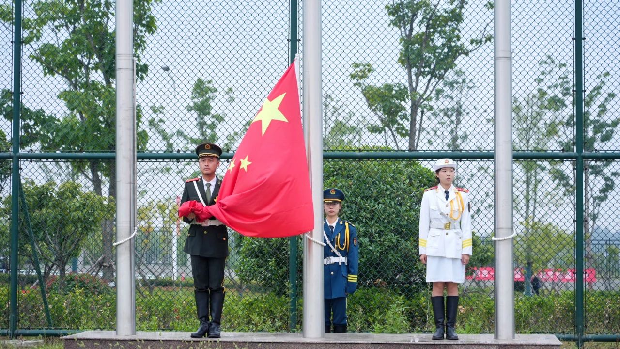 7时25分,国旗护卫队队员迈着铿锵有力的步伐,护送国旗至升旗台。“向国旗——敬礼!”7时30分,随着指挥员响亮的口令声,雄壮的《义勇军进行曲》响彻广场,国旗护卫队升旗手振臂扬起国旗。全场高唱国歌,注视着五星红旗冉冉升起。