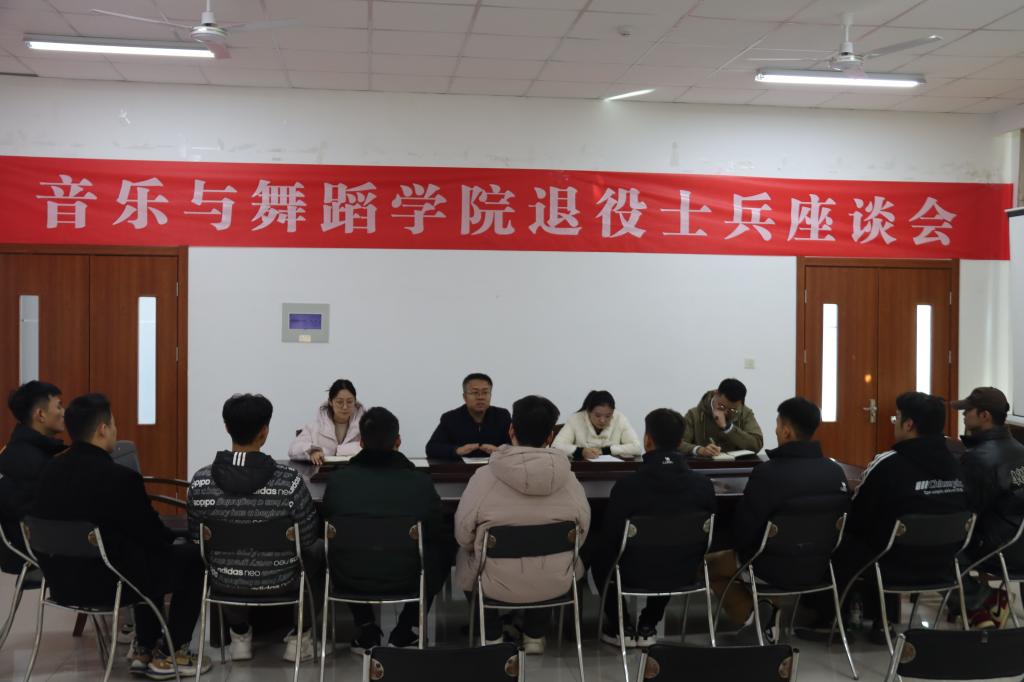 为深入了解学院退役大学生的学习生活适应情况以及思想状况,充分激发退伍士兵永葆军人本色、鼓励发挥模范带头作用,11月28日,音乐与舞蹈学院在薛城校区德艺楼216室举办2024年音乐与舞蹈学院退伍士兵座谈会。