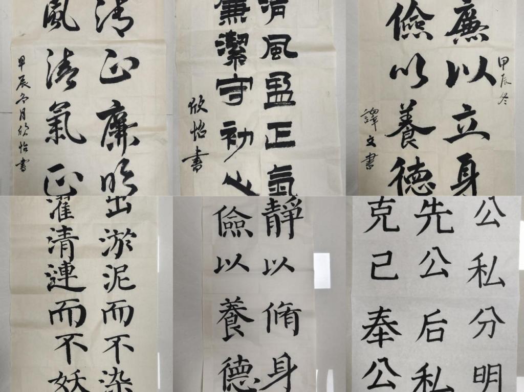 活动当天,文学院师生齐聚一堂,共同见证了这场视觉与心灵的盛宴。比赛现场,参赛者们挥毫泼墨,以笔传情,将廉洁文化的精髓融入书画之中。一幅幅作品或遒劲有力,或温婉细腻,不仅展现了参赛者们的艺术才华,更传递了他们对廉洁文化的深刻理解和崇高敬意。