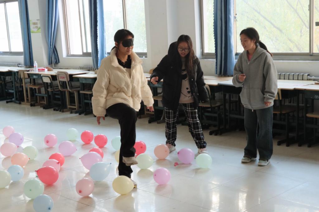 心灵栖息处,压力释放时。此次活动涵盖了比划传声筒、套圈游戏、数字陷阱、蒙眼过障碍等多种游戏。同学们以积极的态度投入到活动中,认真体验和感受,保持开放心态,彼此鼓励,配合默契;在轻松愉快的游戏氛围中释放压力,抛掉烦恼。活动安全保障措施到位,顺利进行,最后,由评委评选出一等奖1组、二等奖2组、三等奖3组、优秀奖4组。