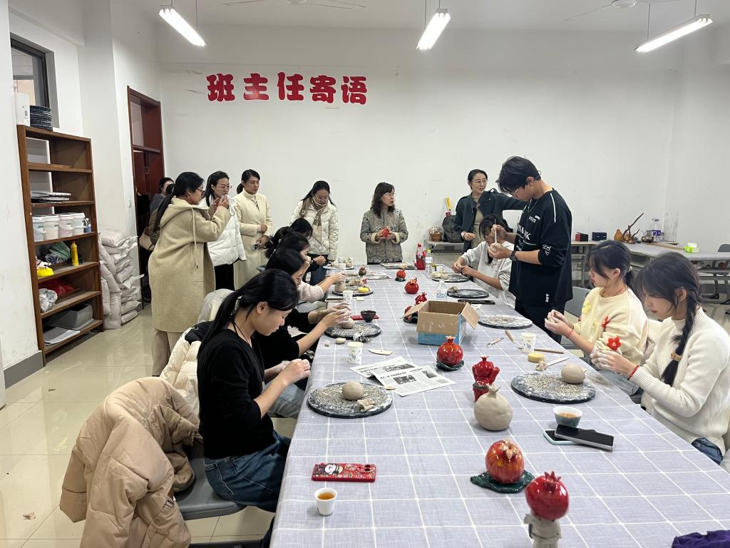李军园长及骨干教师一行在参观了教师教育实训室和民间艺术传承工作室,观摩了学生的手工技艺展示后,对学院完善的教学设施、丰富的课程设置及传统文化传承的做法给予了高度评价。