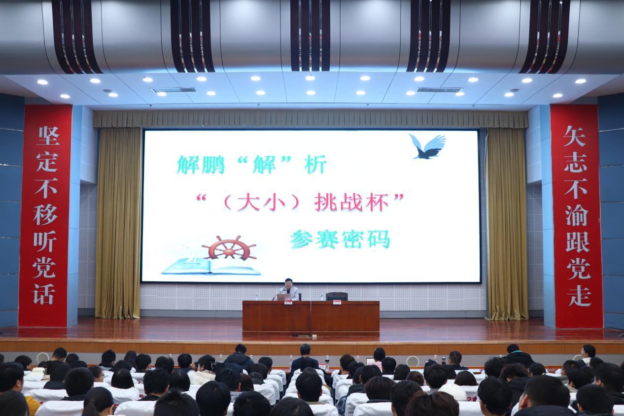 为引导和促进大学生创新精神、提升创业能力,积极备战2025年第十九届“挑战杯”山东省、全国大学生课外学术科技作品竞赛,校团委于12月4日下午在市中校区综合楼报告厅召开了第二期班墨大讲堂“挑战杯”专题报告。报告邀请了知名国学学者、创业导师解鹏进行专题讲解,校团委书记袁心主持,两校区共500余人参加。