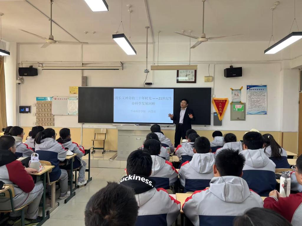 在此次活动中,生命科学学院的冯慧喆博士以《漫长又神奇的二十年时光--21世纪生命科学发展回顾》为主题,以深入浅出、幽默风趣的语言介绍了基因组学、合成生物学、细胞与基因治疗艺术、脑科学奥秘探索及mRNA技术等生命科学领域的科学研究进展。