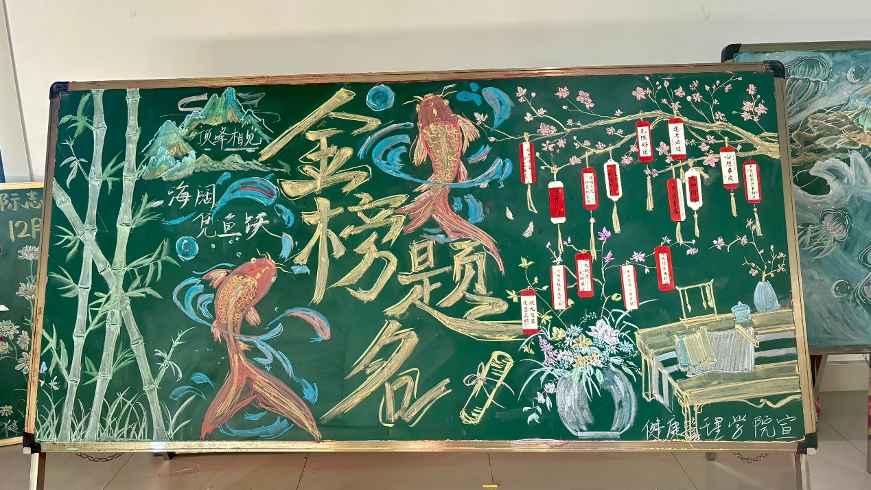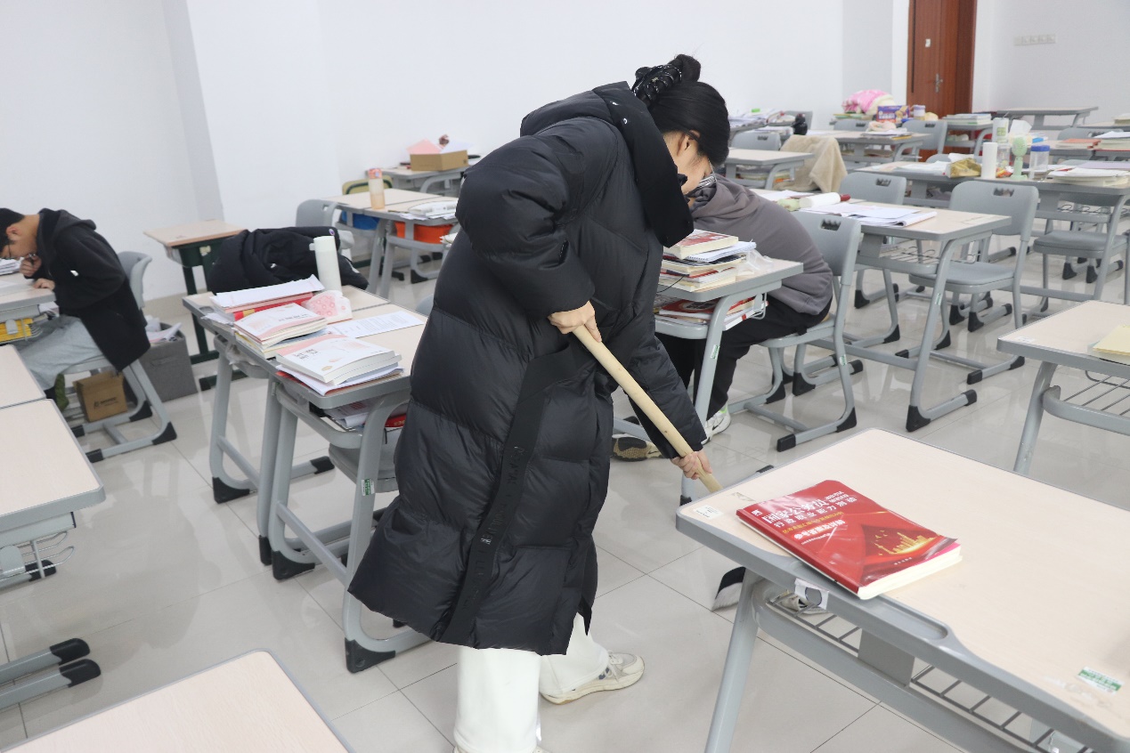 近日,学院学生会对考研教室进行了全面打扫,清洁地面、擦拭桌面、整理杂物,为考研学子营造了更加整洁、舒适的备考环境。非毕业班学生还自发录制了考研祝福视频,向考研学子们传达了鼓励与祝福。学院学生会还绘制了“冬日送温暖 研途笃信念”展板,展板采用金黄色、浅蓝色等温馨舒适的色彩搭配,装饰有学生手写的祝福卡片,营造了积极向上的氛围,以直观、清晰、明确的画面为考研学子送上鼓舞与祝福。