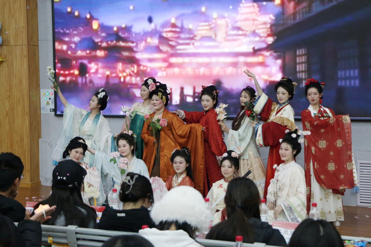 第二篇章“古韵映今朝”勾勒出一幅中华优秀传统文化的精美画卷,国学社的古装走秀《花满良辰》、大学生礼仪协会的《礼韵》及民间手工艺协会的多重才艺展《艺美风华》显示出中国传统文化的气韵悠长。
