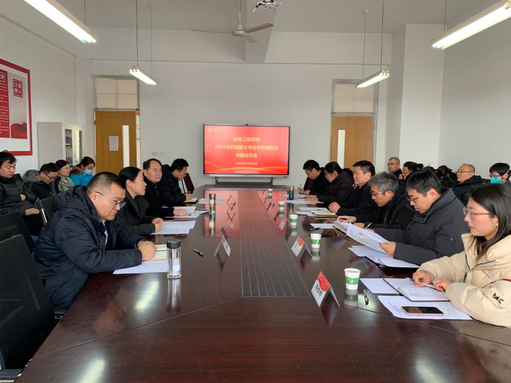 12月30日上午,机电工程学院在理工楼2514会议室召开2025年机械硕士专业学位授权点申报动员会。研究生处处长闫昕出席会议并讲话。机电工程学院党委书记宋建修、院长卢纪丽出席会议,宋建修主持会议。研究生处全体人员、机电工程学院领导班子成员、机械硕士专业学位点全体骨干教师参加动员会。
