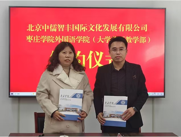2月9日上午,外国语学院(大学英语教学部)在薛城校区豁然楼A102会议室与北京中儒智丰国际文化发展有限公司举办海外留学与语言培训项目签约仪式。北京中儒智丰国际文化发展有限公司总经理刘丰、副总经理张春雷,校工会主席盛清银,国际交流处副处长、国际教育学院副院长梁钰堃,学院党委书记滕聿峰、院长韩建侠及其他党政领导、相关教师一同出席仪式。