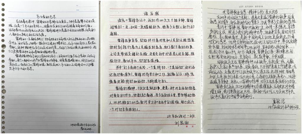 本次活动组织观看电影《雷锋》《离开雷锋的日子》等经典影片,同学们深刻感受到雷锋对党、国家、人民朴实而真挚的爱。观影结束后,同学们从雷锋的精神内涵、雷锋精神的时代意义等几个方面撰写读书笔记,阐述了雷锋为人民服务的伟大精神。评委团从笔记内容的完整性、书写清晰度、笔记排版等多个角度对参赛笔记评选,最终评选出一等奖一名,二等奖三名,三等奖六名。