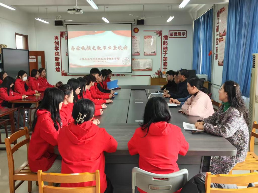 3月5日,心理与教育科学学院(初等教育学院)在教师教育楼二楼资料室召开2025年春季援疆支教学生座谈会,学院党政领导、辅导员、 往届支教优秀学生代表、37名春季援疆支教学生参加会议。
