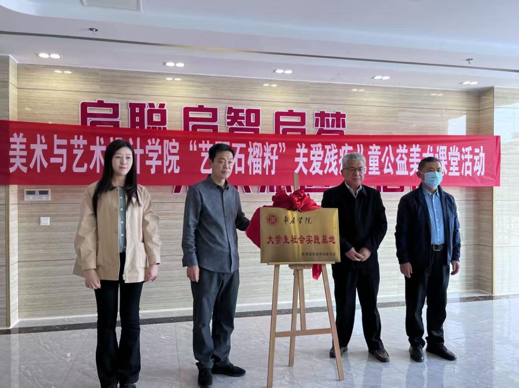 活动现场举行了“大学生社会实践基地”揭牌仪式,美术与艺术设计学院和枣庄市残疾人综合康复中心将正式启动在残疾儿童美术教育领域的深度共建,充分践行“146”行动,立足残疾儿童美育资源匮乏的痛点,发挥美术专业特长,构建残疾儿童“美育课程—作品创作—文创研发—公益展卖”全链条服务模式的创新探索。