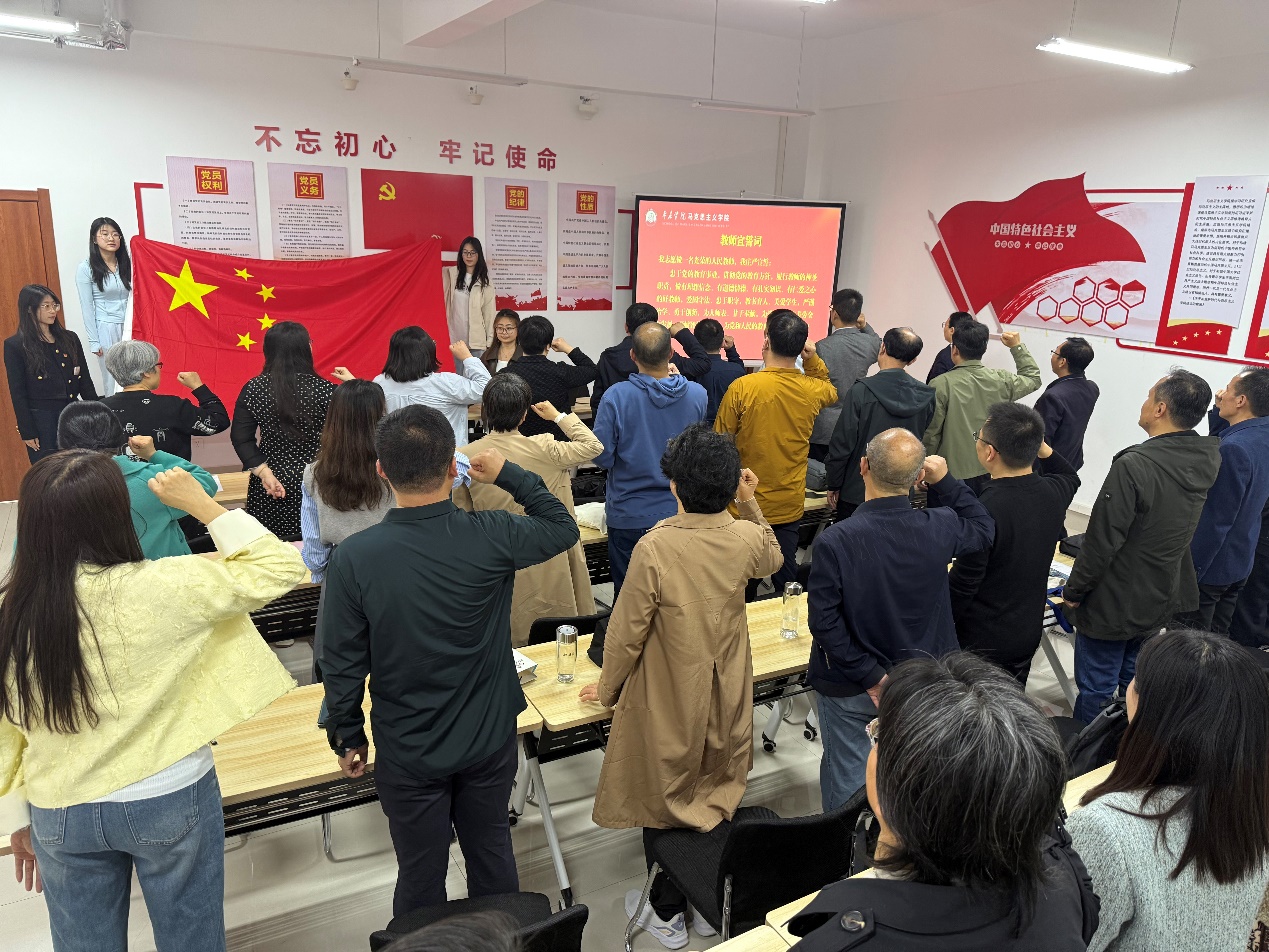 在院长董嫱嫱的带领下,全体教师进行了庄严的师德师风宣誓。大家整齐站立,面向国旗,右手握拳,郑重地许下承诺,铿锵有力的誓言彰显着老师们坚守师德、用心育人的决心。