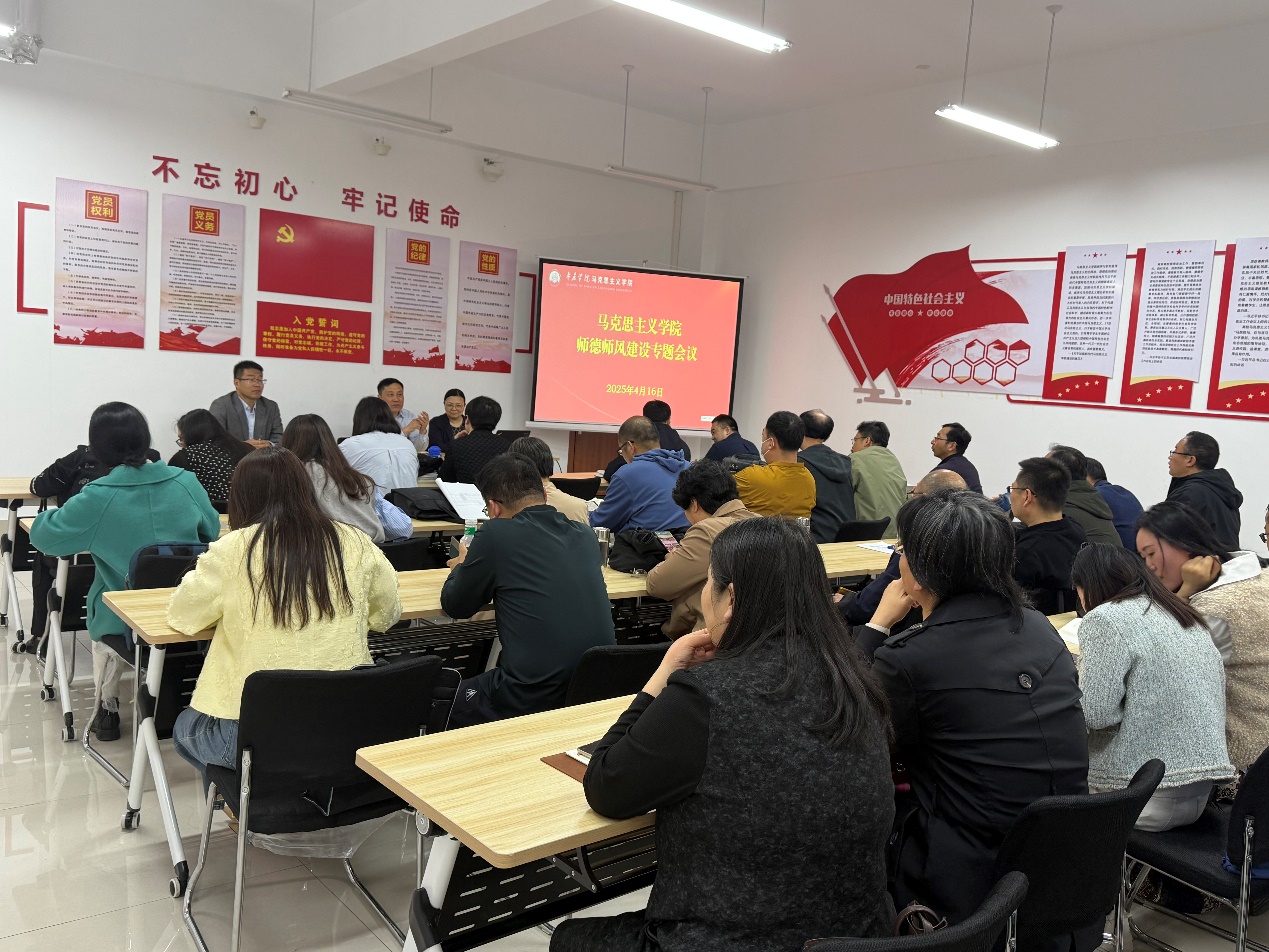 为使深入贯彻中央八项规定精神学习教育走深走实,进一步加强师德师风建设,强化教师责任意识,严守师德规范,引导教师坚定理想信念,陶冶道德情操,涵养扎实学识,勤修仁爱之心,4月16日下午,马克思主义学院召开师德师风建设专题会议,学院领导班子成员及全院教师参加会议。