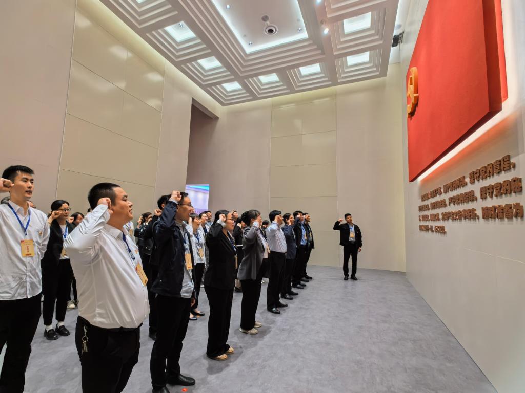 在廉政教育馆,全体党员依次参观了纪律教育、警示教育、廉洁文化等专题展厅,通过聆听现场讲解、参观典型案例图文展板、观看警示教育短片等方式,全面深入了解党在不同时期加强自身建设的历程。一个个触目惊心的违纪违法案例,一篇篇发人深省的手写忏悔书,无不让在场的党员干部接受了一次深刻的党性洗礼和警示教育。参观结束后,大家面对鲜红的党旗庄严宣誓,重温入党誓词,回顾初心使命。