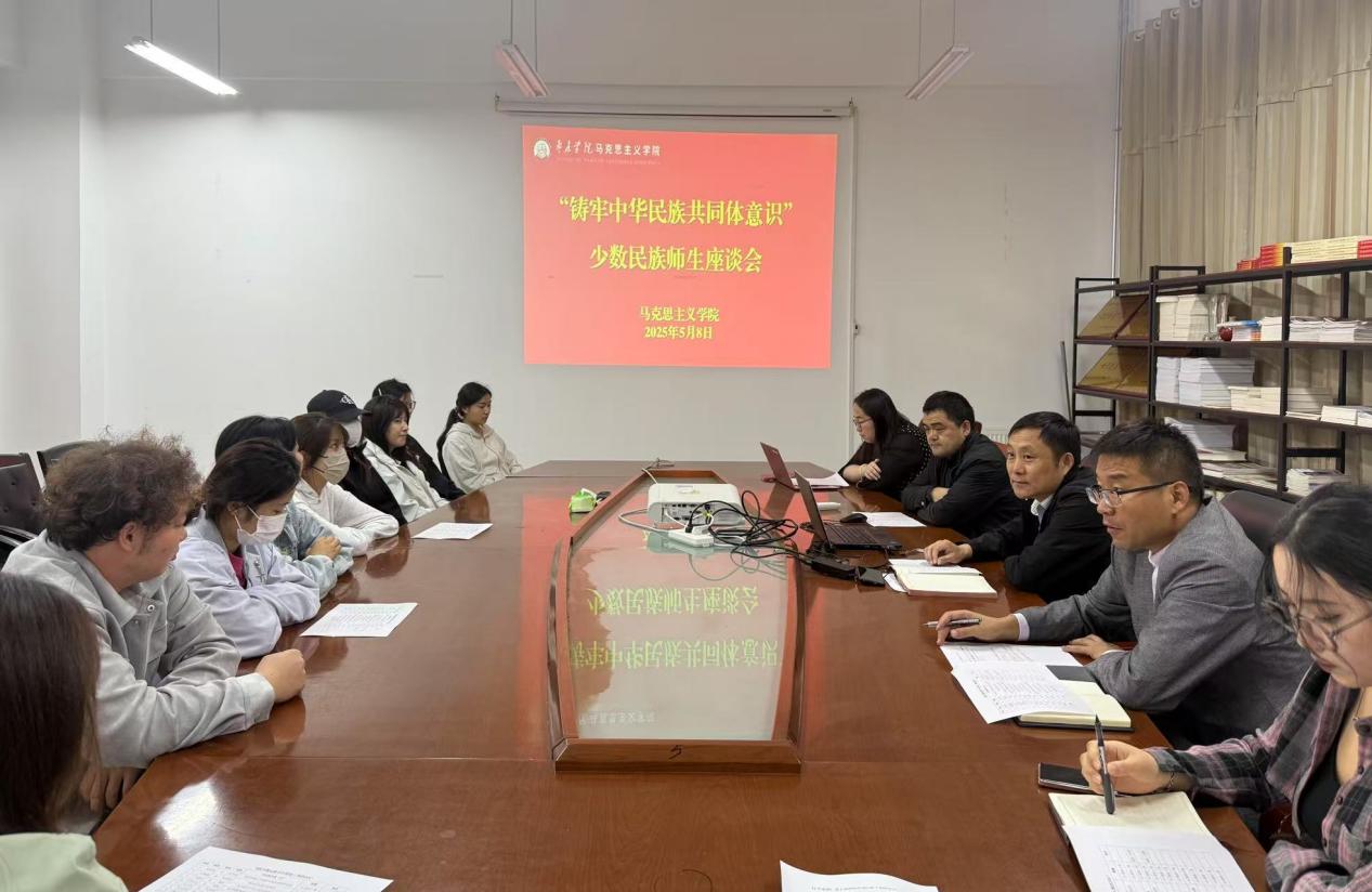 为认真贯彻落实习近平总书记关于民族工作的重要论述,铸牢中华民族共同体意识,进一步落实立德树人根本任务,5月8日,马克思主义学院在薛城校区豁然楼A315会议室召开“铸牢中华民族共同体意识”少数民族师生座谈会。